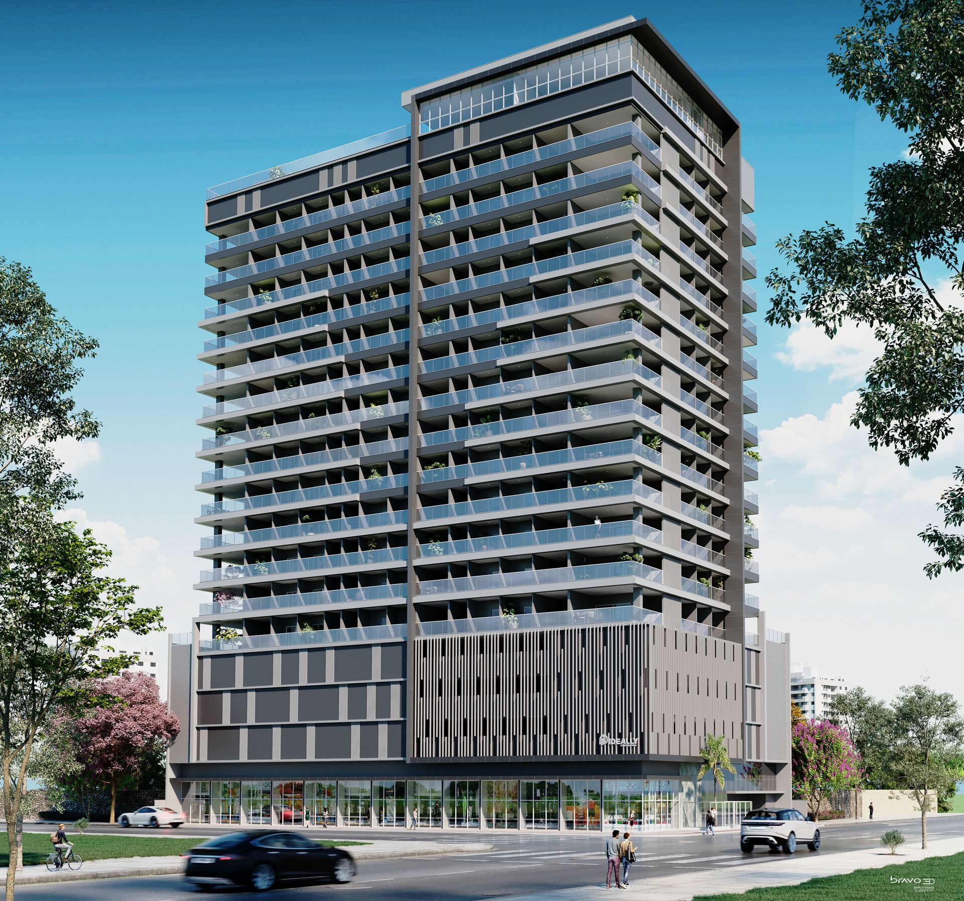 13 pavimentos residenciais e 12 lojas comerciais no térreo, garantindo praticidade e valorização.