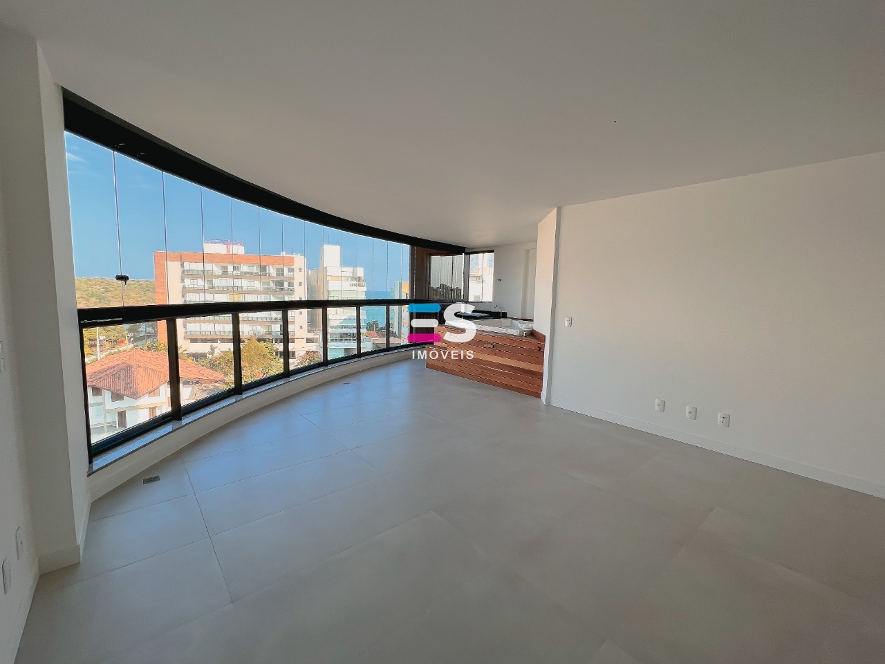 Na Praia da Bacutia, a poucos metros do mar, com 3 suítes sendo duas com varanda, sala e cozinha integrada, lavabo, banheiro de serviço, 2 vagas de garagem com box e um lazer privativo na sua varanda, com SPA e Churrasqueira.