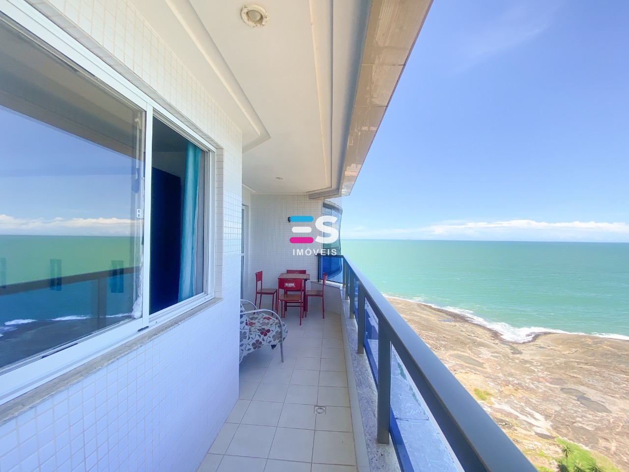 São 3 quartos sendo 1 suíte, sala em dois ambientes e varanda de frente para o mar, cozinha, área de serviço, banheiro social e uma vaga de garagem.