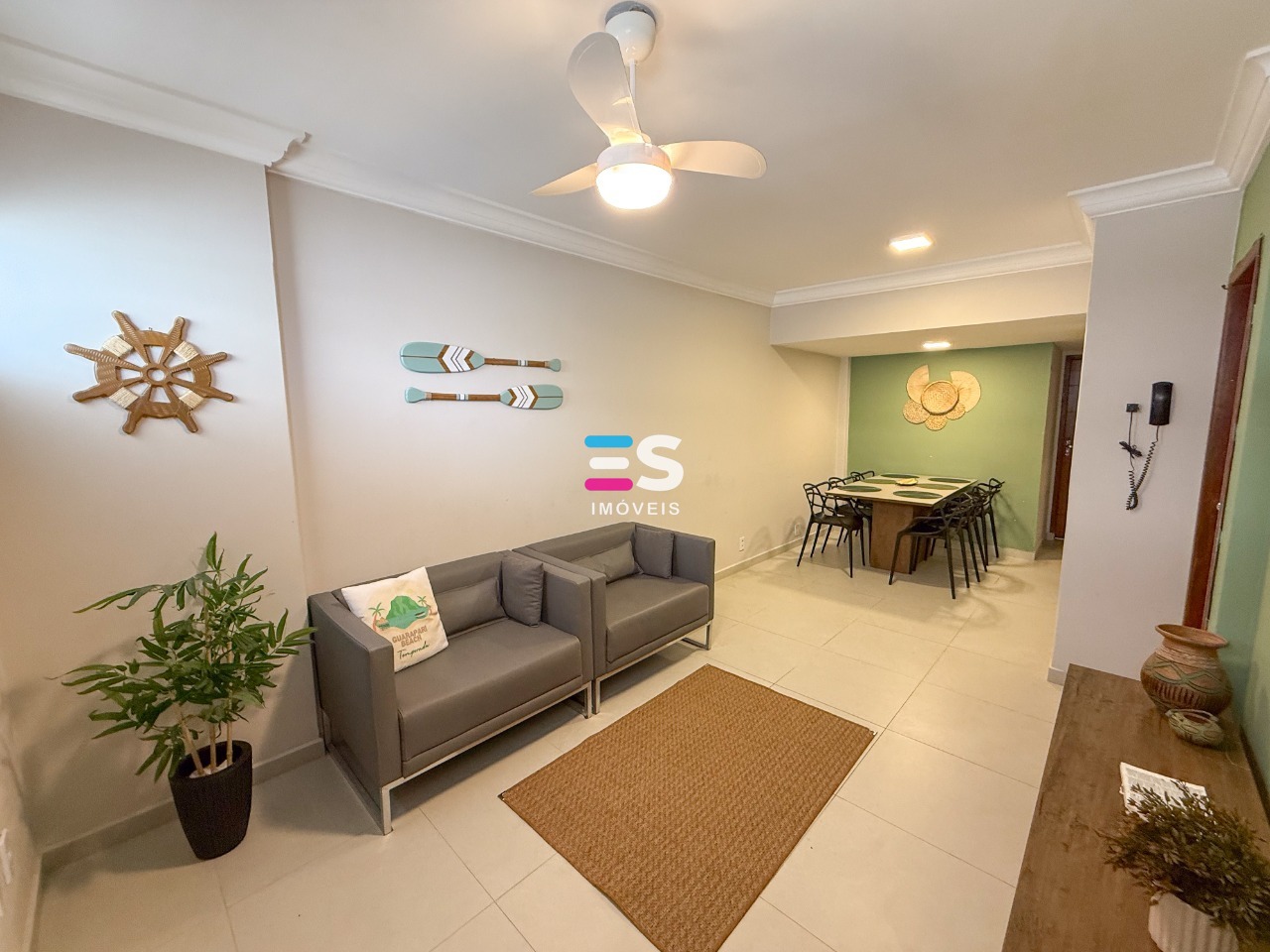 entiladores de teto com controle remoto em todos os ambientes.