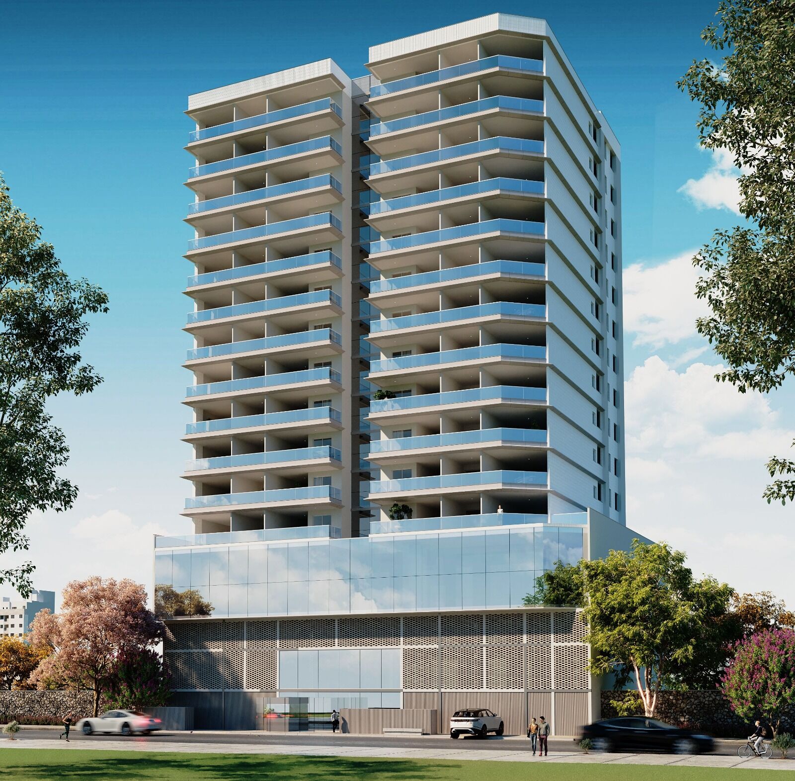 O empreendimento oferece uma diversidade de tipologias, com unidades residenciais distribuídas em 8 colunas por andar.