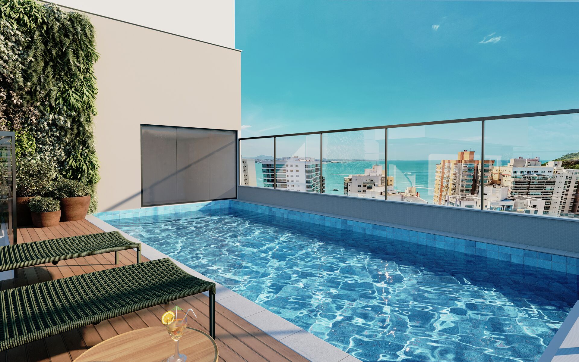O Aurea Mare oferece um conjunto sofisticado de áreas de lazer na cobertura, com um visual paradiasiaco do mar e da cidade: